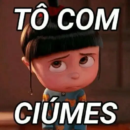 Personagem de desenho animado com expressão de ciúme, texto "TÔ COM CIÚMES" sobreposto.