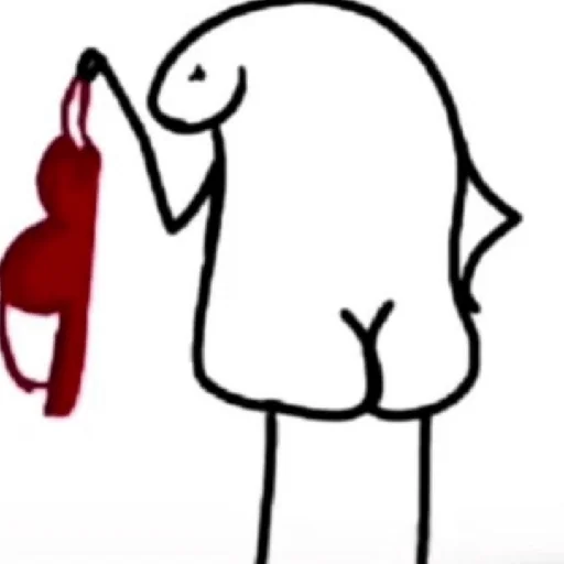 Um desenho simples de uma pessoa segurando um objeto vermelho alongado, com um traço preto e expressão serena.