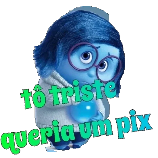 Personagem azul de filme de animação com óculos e expressão triste, texto 'tô triste queria um pix'