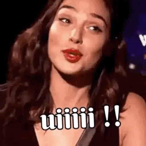 Mulher com cabelo castanho e lábios vermelhos, parecendo surpresa ou confusa, com o texto 'uiiiii !!' sobreposto.