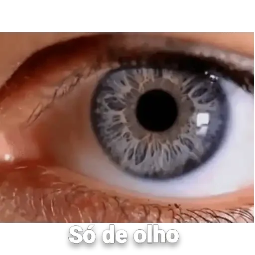 Olho humano com íris cinza-azulada e pupila preta, com a frase 'Só de olho' na parte inferior.