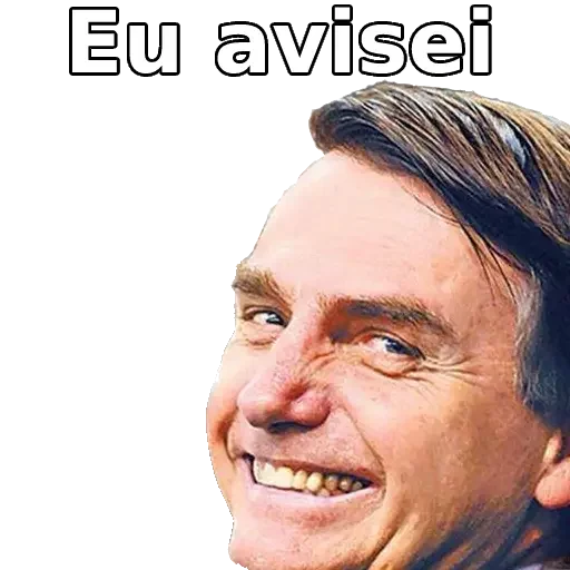 Rosto de um homem sorrindo com o texto 'Eu avisei' acima.