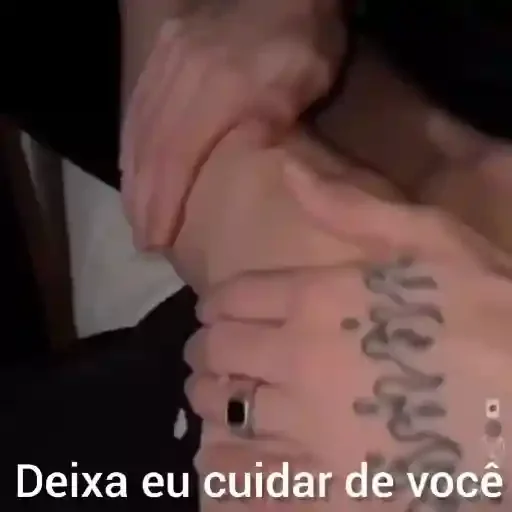 Mãos se encontrando, com uma mão tendo um anel e tatuagens. A frase 'Deixa eu cuidar de você' aparece embaixo.