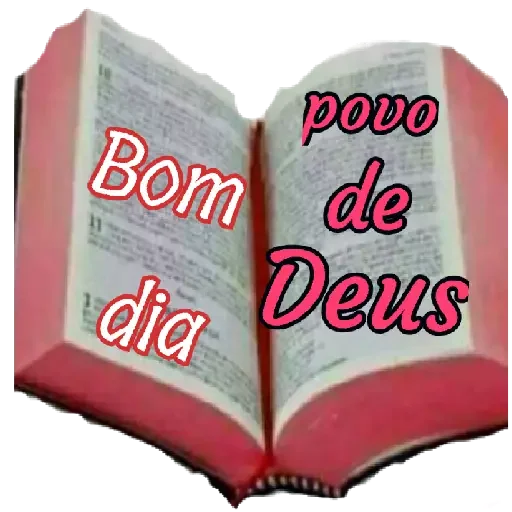 Um livro aberto com as palavras 'Bom dia' e 'povo de Deus' sobrepostas. O livro tem capa vermelha e páginas com texto.