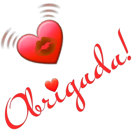Um coração vermelho ao lado do texto 'OBRIGADA MEU ANJO' em letras grandes e rosadas.