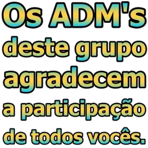 Um texto colorido que diz "Os ADM's deste grupo agradecem a participação de todos vocês." com letras grandes e estilo dégradé.