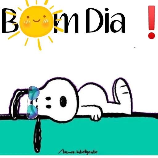 Um desenho do Snoopy deitado de lado, com óculos de sol, ao lado de um sol sorridente e a frase 'Bom Dia!'