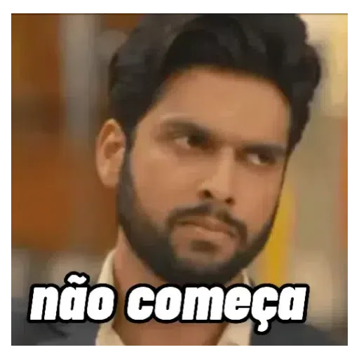 Um homem com cabelo preto e barba olha para algo com uma expressão séria e descrente. O texto 'não começa' aparece em destaque na parte inferior da imagem.
