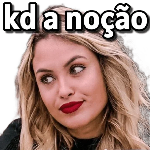 Uma mulher loira com maquiagem e lábios vermelhos, parecendo confusa ou surpresa, com o texto 'kd a noção' em cima.