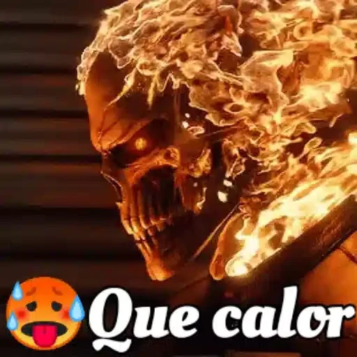 Uma cabeça de um ser com chamas ao redor, com a expressão de dor ou surpresa. Abaixo dele, está escrito 'Que calor'.
