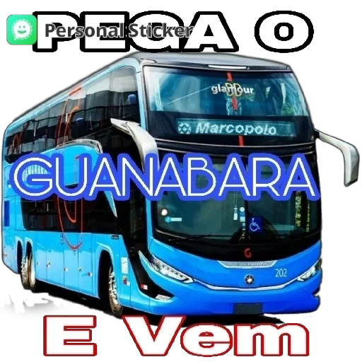 Ônibus azul da Guanabara com texto 'PEGA O E Vem' e 'Proibido Fumar'