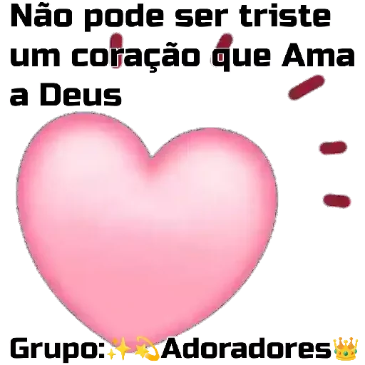 Um coração rosa com a frase 'Não pode ser triste um coração que Ama a Deus' e o texto 'Grupo: Adoradores' com estrelas douradas.
