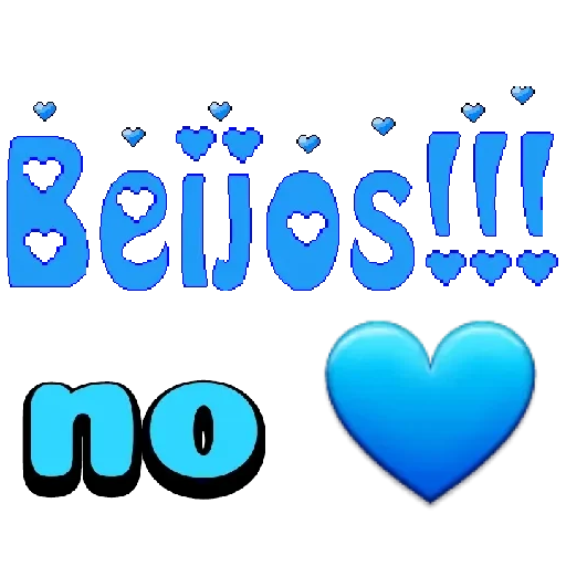 Um coração azul e o texto 'Beijos!!!' com corações pequenos ao redor, e 'no' em letras azuis.