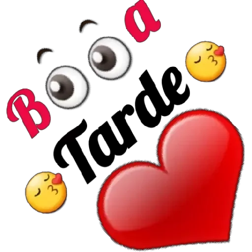 Um coração vermelho com olhos arregalados e texto 'Boa Tarde' e emojis de coração.