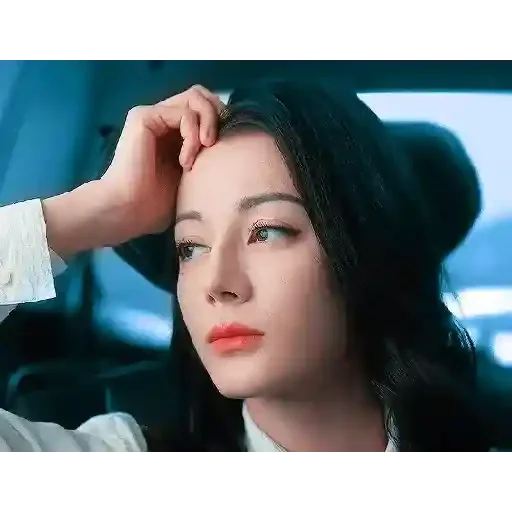 Mulher com expressão de preocupação ou estresse, mão na testa, dentro de um carro.