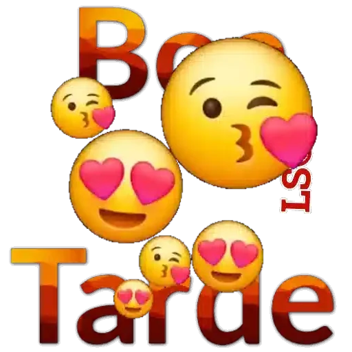 Um conjunto de emojis de coração com a frase 'Boa Tarde'. Os emojis incluem rostos sorrindo com corações nos olhos e beijando o rosto.