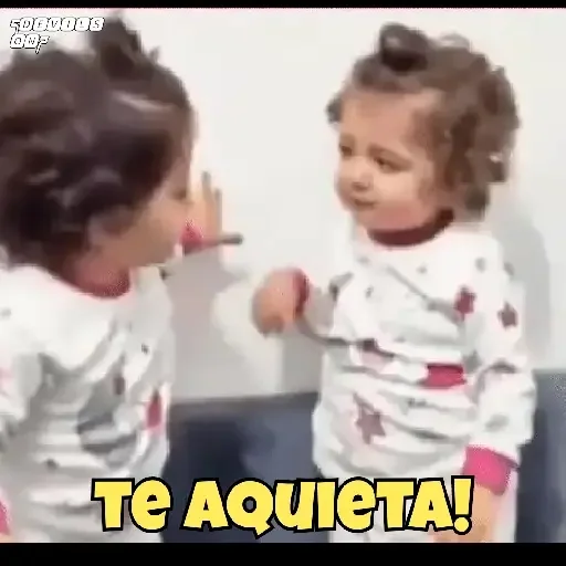 Duas crianças pequenas se enfrentam, uma com a mão levantada como se estivesse prestes a dar um tapa na outra, ambas…