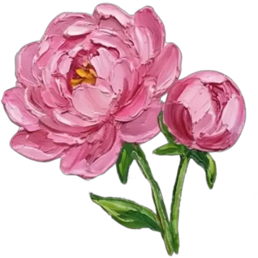 Duas flores rosa com folhas verdes, desenhadas em estilo ilustrativo.