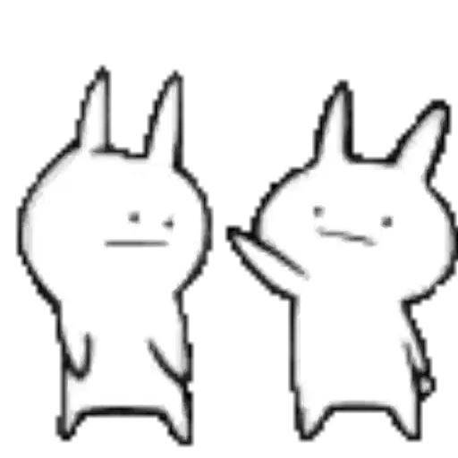 Dois coelhos brancos com expressões tristes, um ao lado do outro, com um deles apontando para o outro.