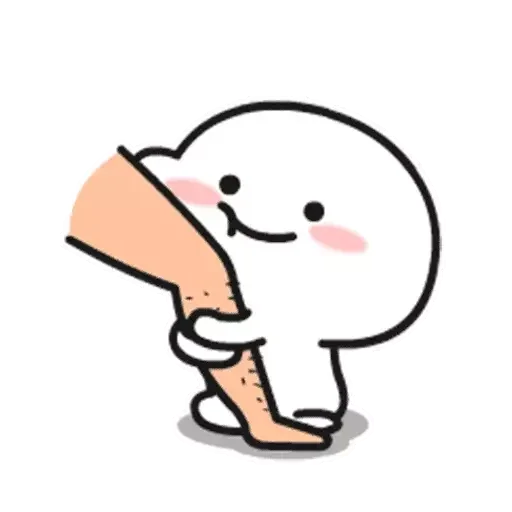 Um personagem de desenho animado branco e redondo com bochechas rosadas e um sorriso, sendo abraçado por um braço humano.