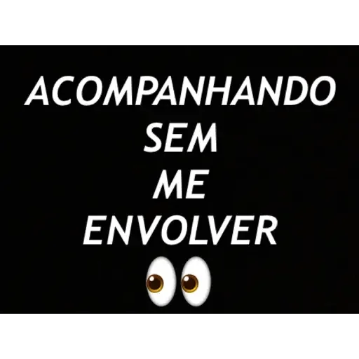 Um retângulo preto com texto branco que diz 'ACOMPANHANDO SEM ME ENVOLVER' e dois olhos curiosos abaixo.