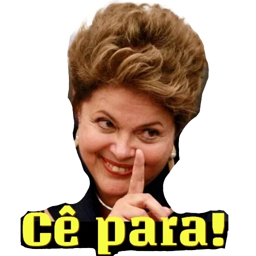 Mulher com cabelo curto e castanho, fazendo um gesto de silêncio com o dedo indicador na frente da boca, com o texto 'Cê para!' em amarelo.