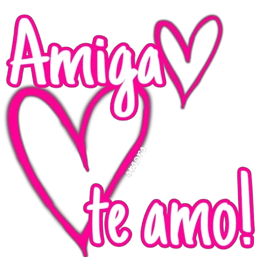 Um coração rosa grande com o texto "Amiga te amo!" em letras rosas com contorno branco.