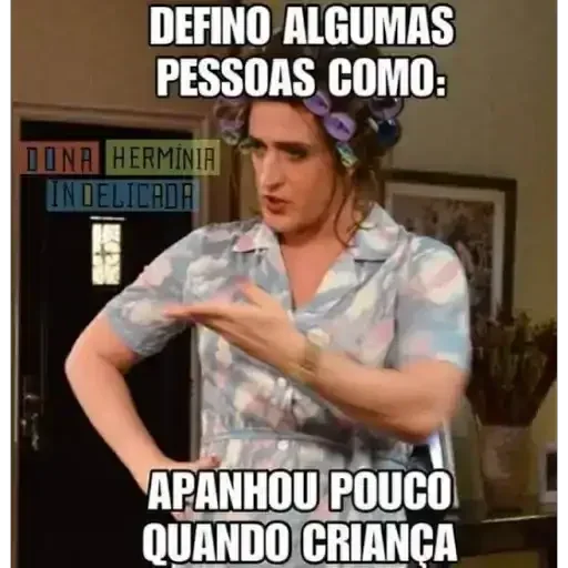 Uma mulher com expressão séria e mão no peito, com texto "DEFINO ALGUMAS PESSOAS COMO: APANHOU POUCO QUANDO CRIANÇA".