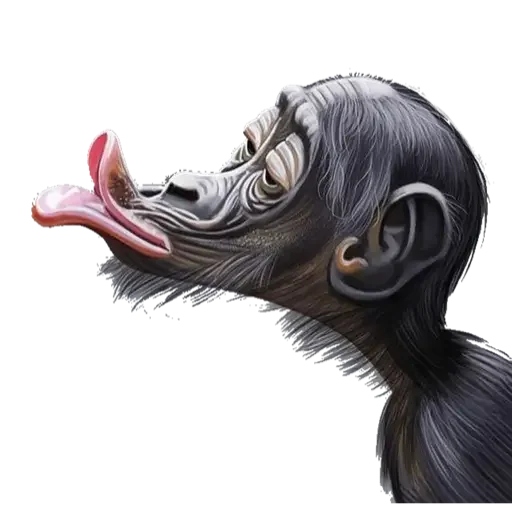 Um macaco com a língua para fora, parecendo fazer uma careta engraçada. A imagem é uma ilustração digital realista.