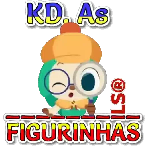 Um personagem de anime com óculos e um chapéu laranja olha por uma lupa, com texto 'KD. As' em cima e 'FIGURINHAS' embaixo.