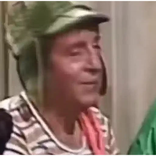 Um homem mais velho com uma expressão séria, vestindo um chapéu verde e uma camisa listrada.