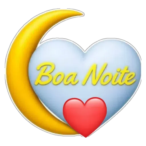Coração azul com lua crescente ao lado e coração vermelho em baixo, texto 'Boa Noite' em amarelo