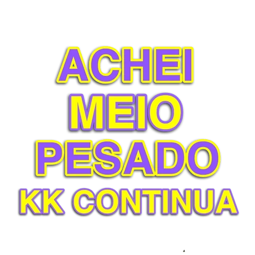 Um texto colorido que diz 'ACHEI MEIO PESADO KK CONTINUA' em letras grandes e bold, com cores roxa e amarela.