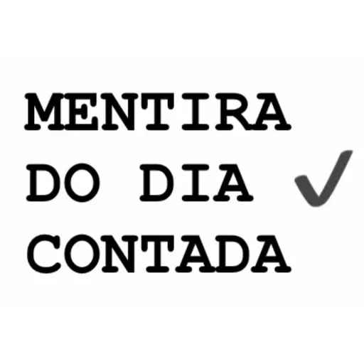 Uma figurinha com texto que diz 'MENTIRA DO DIA CONTADA' em letras maiúsculas pretas, com um símbolo de verificação cinza.
