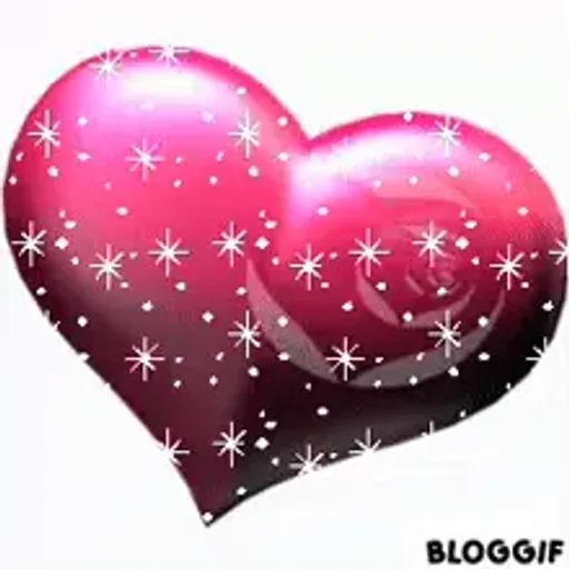 Coração rosa com estrelas brancas, fundo preto. Texto 'BLOGGIF' no canto inferior direito.