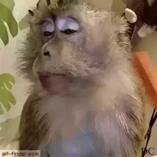 Macaco com expressão de surpresa ou dor de cabeça, com a mão na cabeça.