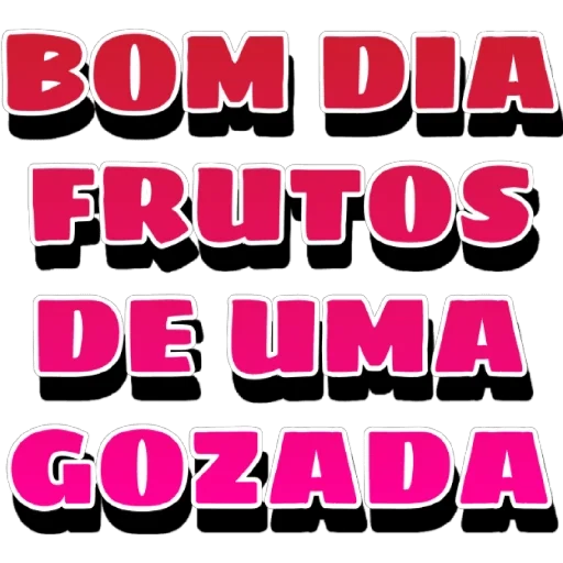 Um texto colorido que diz 'BOM DIA FRUTOS DE UMA GOZADA' em letras grandes e bold, com dégradé de cores entre rosa e vermelho, e sombra preta.