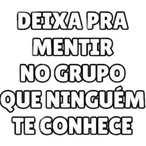 Um texto em branco e preto que diz 'DEIXA PRA MENTIR NO GRUPO QUE NINGUÉM TE CONHECE'.