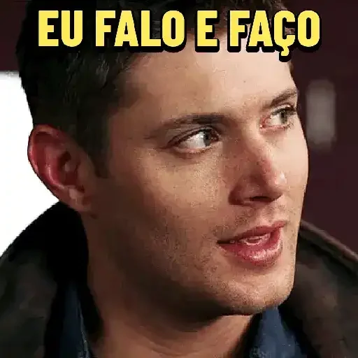 Imagem de um homem com expressão séria e olhar lateral, com o texto 'EU FALO E FAÇO' em letras amarelas na parte superior.