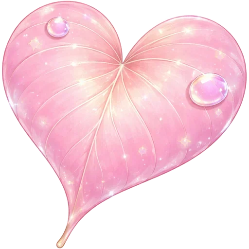 Um coração rosa brilhante com gotículas de água, parecido com uma folha.