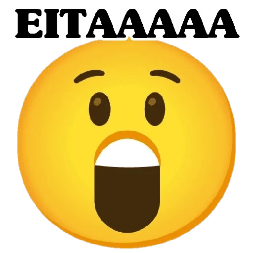 Um emoji de rosto amarelo com expressão de surpresa, boca aberta e olhos arregalados. A palavra 'EITAAAAA' está escrita acima dele.