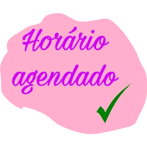 Um blob rosa com o texto 'Horário agendado' em roxo e um check verde.
