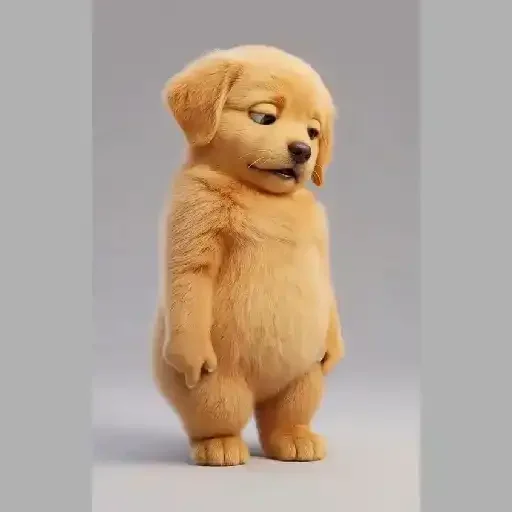 Um cachorrinho fofo de pelo dourado, com expressão curiosa e orelhas caídas, está em pé sobre as patas traseiras.