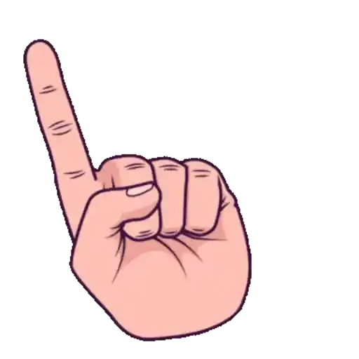 Mão com dedo indicador levantado, parecendo apontar ou fazer um gesto de 'um dedo'. A mão é rosa com linhas de expressão e contorno roxo.