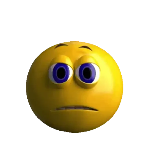 Um emoji amarelo com expressão de desconfiança ou descrença, olhos grandes e azuis, sobrancelhas franzidas e boca para baixo.