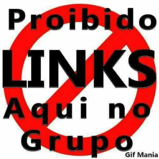 Um sinal de proibição com um círculo vermelho e uma linha diagonal, sobreposto com o texto 'Proibido Links Aqui no Grupo' em preto. No canto inferior direito, aparece 'Gif Mania'.