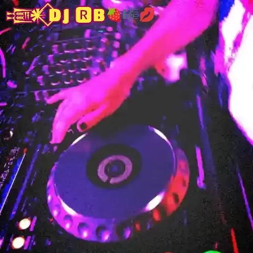 Mão de uma pessoa operando um toca-discos com luzes coloridas, texto 'DJ RB' no canto superior esquerdo.
