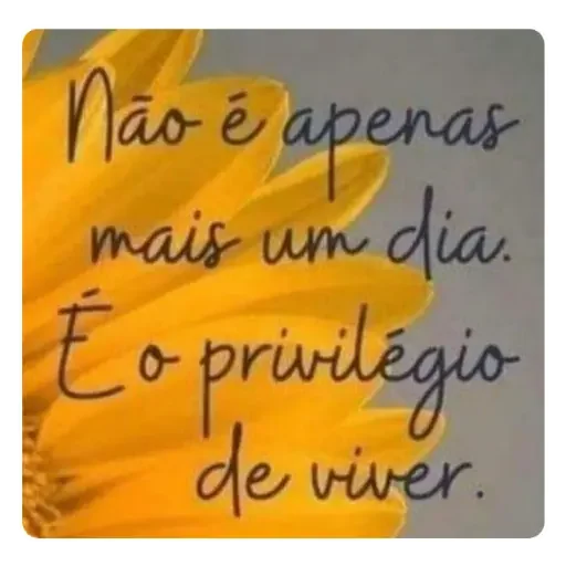 Uma flor amarela com texto escrito em preto: 'Não é apenas mais um dia. É o privilégio de viver.'