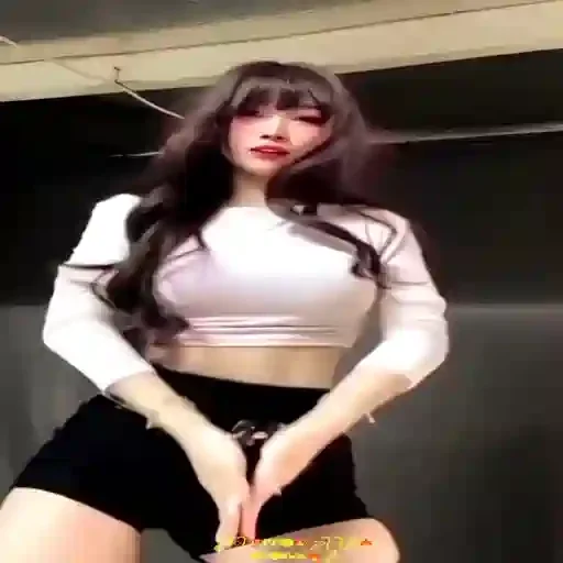 Uma jovem mulher com cabelo castanho e bangs, vestindo uma blusa branca e shorts pretos, posando com as mãos na frente do corpo.