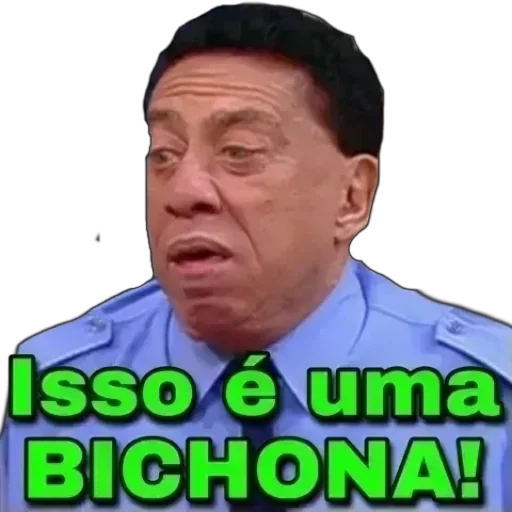 Um homem de meia-idade com expressão surpresa e boca aberta, vestindo uma camisa azul e gravata preta, com o texto "Isso é uma BICHONA!" em letras verdes.